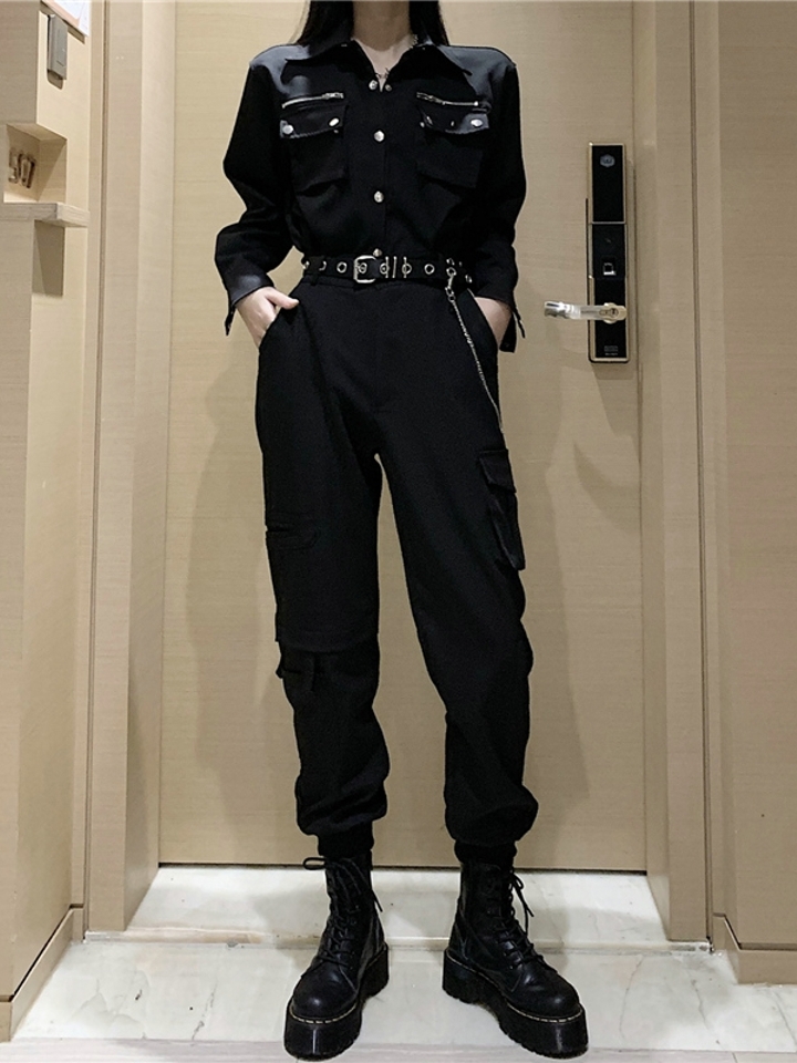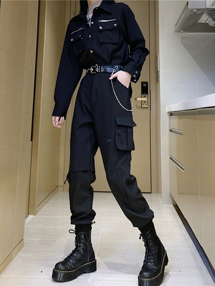 工装风潮受人们喜欢, 压了前裤骨线,九分裤能露出脚裸,瞬间拉伸腿长,穿出美图秀秀的效果~!看着成熟,沉稳。它百搭低调的设计却让时尚气息更加浓郁。