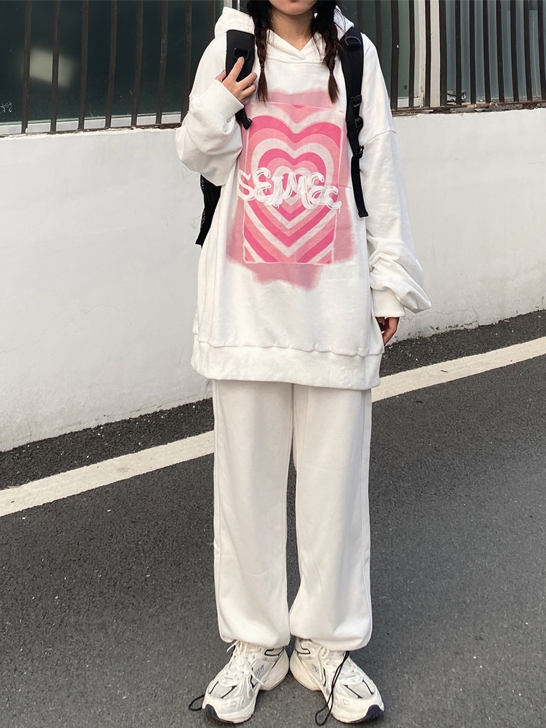 这款卫衣甄选舒适厚实的加绒内里,上身穿着亲肤又保暖。衣身采用宽松落肩的版型,搭配胸前个性的心形涂鸦印花点缀,潮流时尚,彰显个性魅力。抽绳连帽的设计,可以带来更好的穿着体验。衣身上多处的图案设计,尽显潮趣街头感。