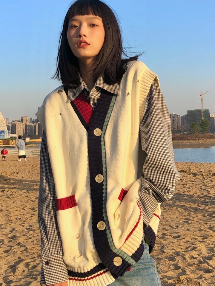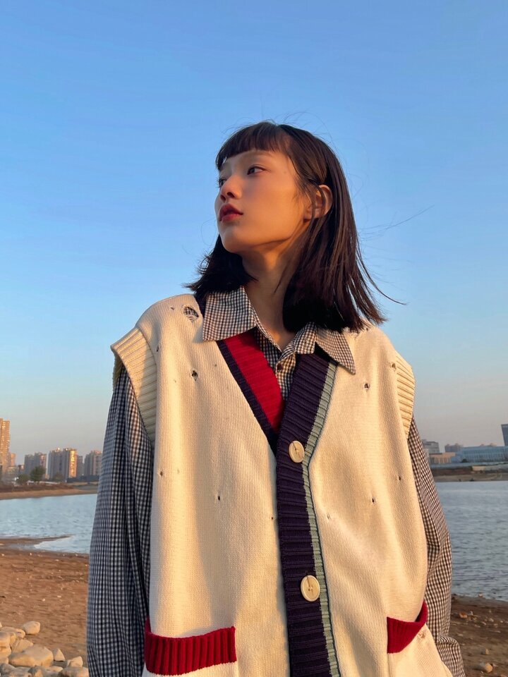 定制定染高克重的羊毛纺纱线,编织紧密,手感绵软,领口,下摆采用了不对称的繁简对比。且再设计了领口的尖角Deconstruction设计。