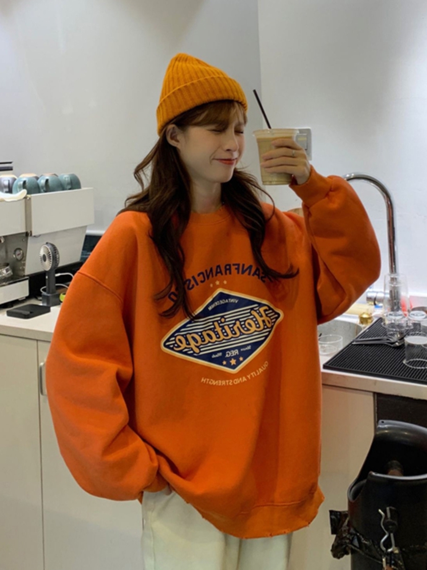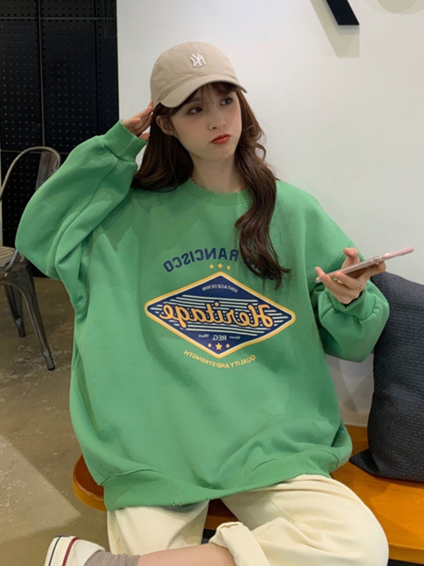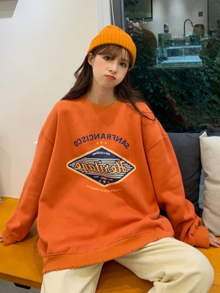 基础款的套头领口,不束缚脖子,任何脸型都可穿,精美的字母图案,增加了吸睛指数,更具衣衣的特色哦。