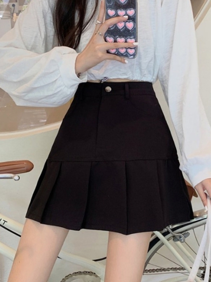 复古味很浓的一款半身裙,裙子不是夏天那种薄薄的料子,会厚一点,而且是百褶款的哦~冬天搭配卫衣外套,还有堆堆袜再加一双浅口鞋,十分复古文雅呢~