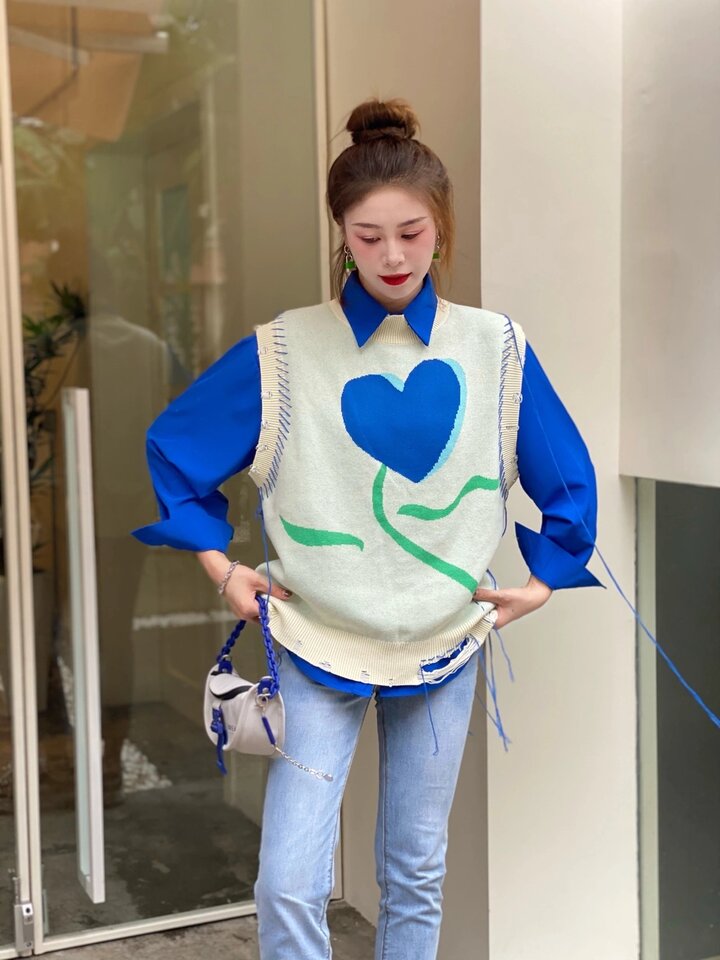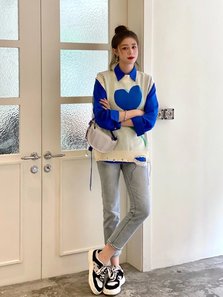 毛衣背心一年四季都可以叠穿,设计感十足,巨好看的叠穿,针织感很舒服,这个颜色也好看,很显白。