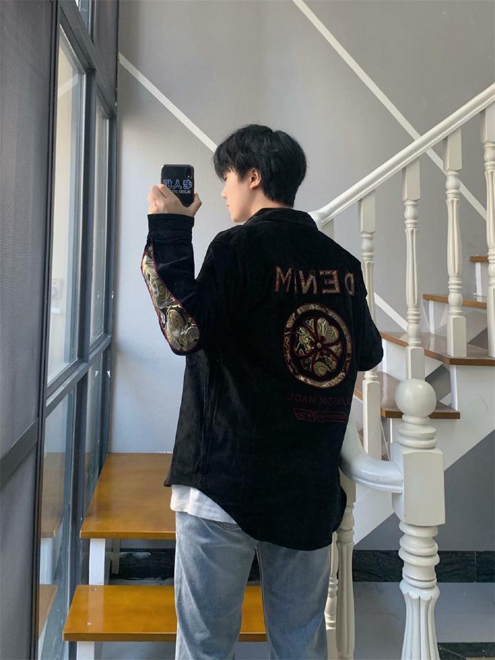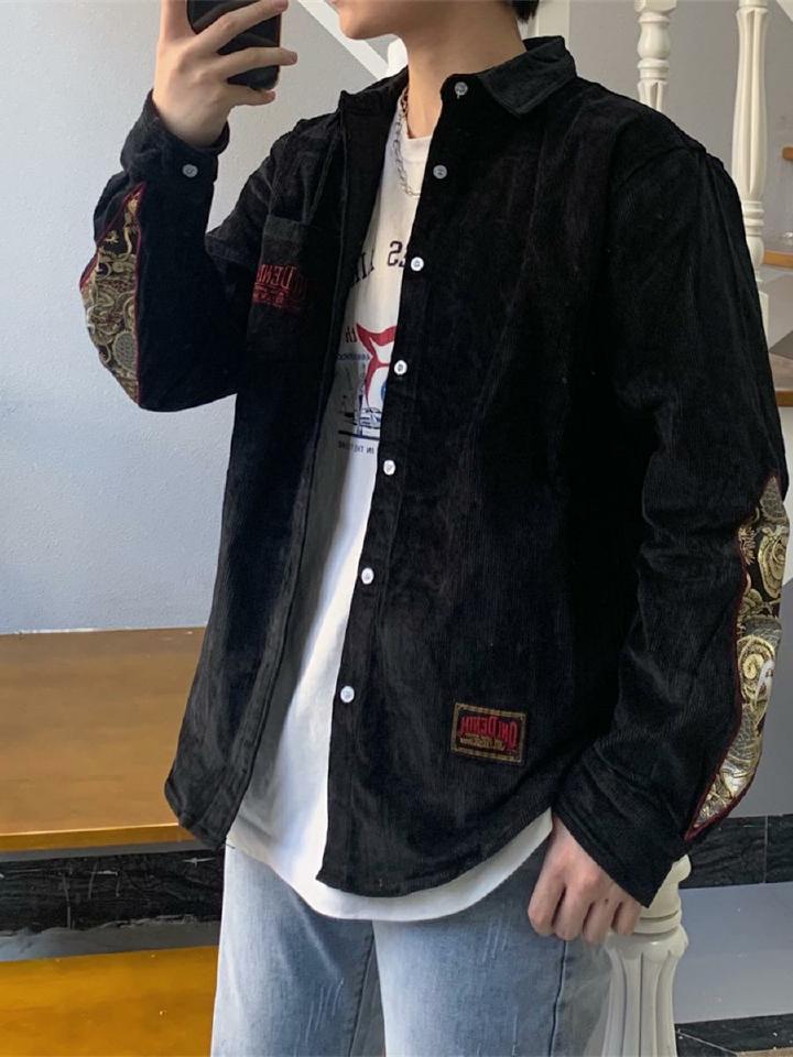 质量不错,印花很特别很喜欢,上身效果显瘦,值得购买,复古的灯芯绒面料,时尚怀旧,温和的质感,柔软舒适,门襟单排暗扣设计,简洁大方,落肩长袖设计,弱化肩部线条提升气质