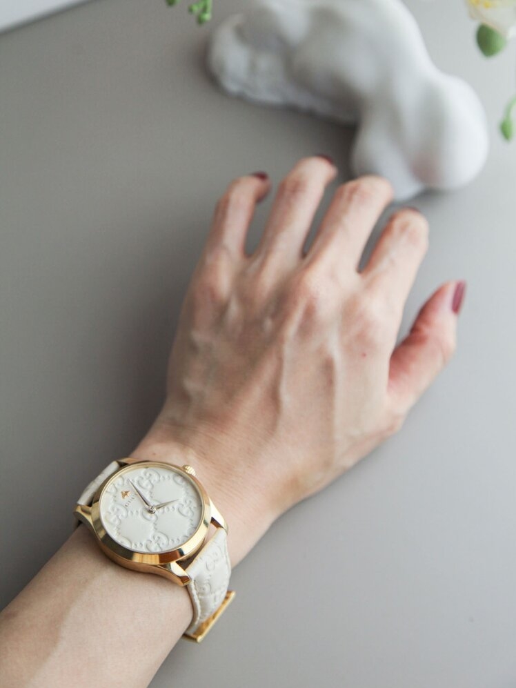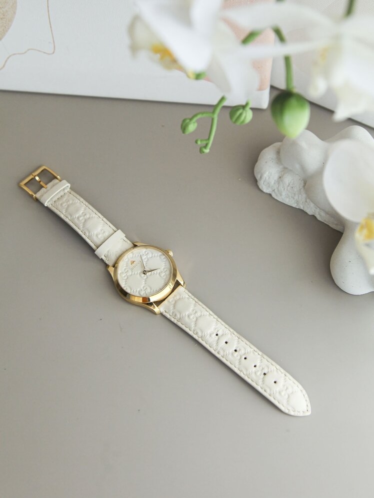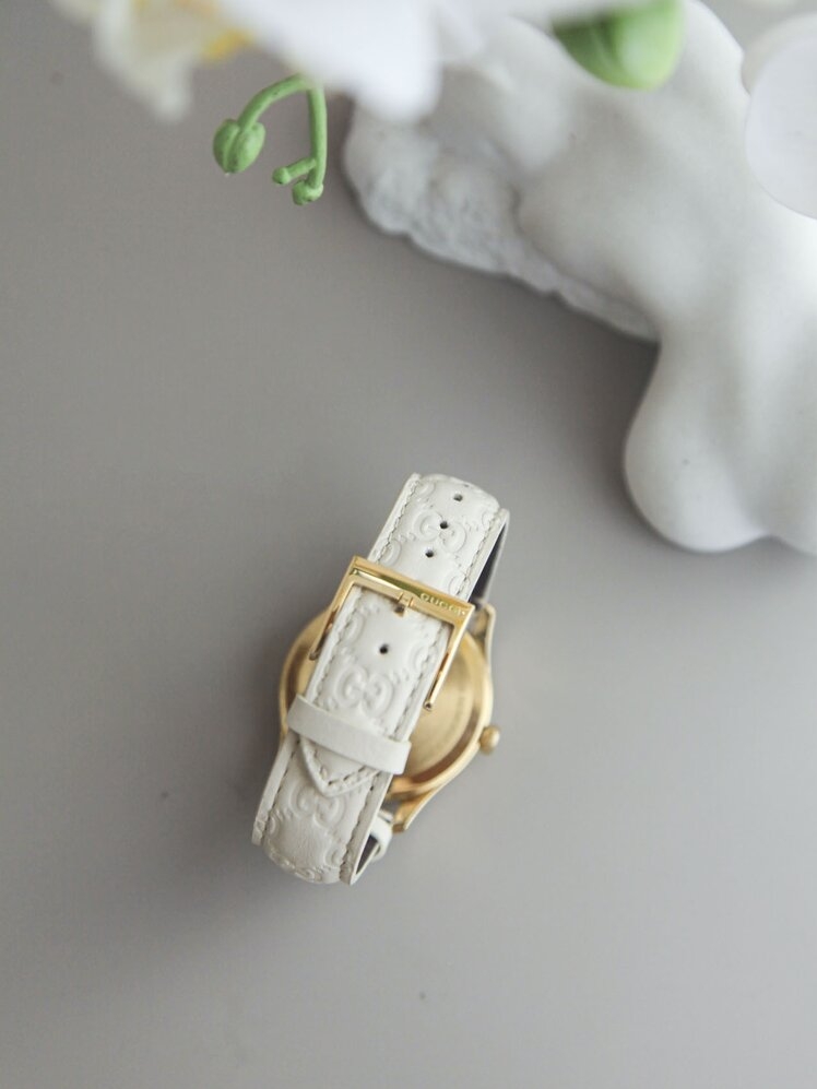 Gucci品牌一向以高档、豪华、而闻名于世,我这款腕表亦是如此,看上去时尚大方又很美观。白色的表盘也很大气,搭配上白色的表带也能有效展现出我们不俗的气质和魅力。