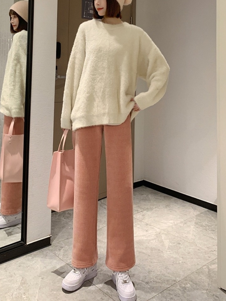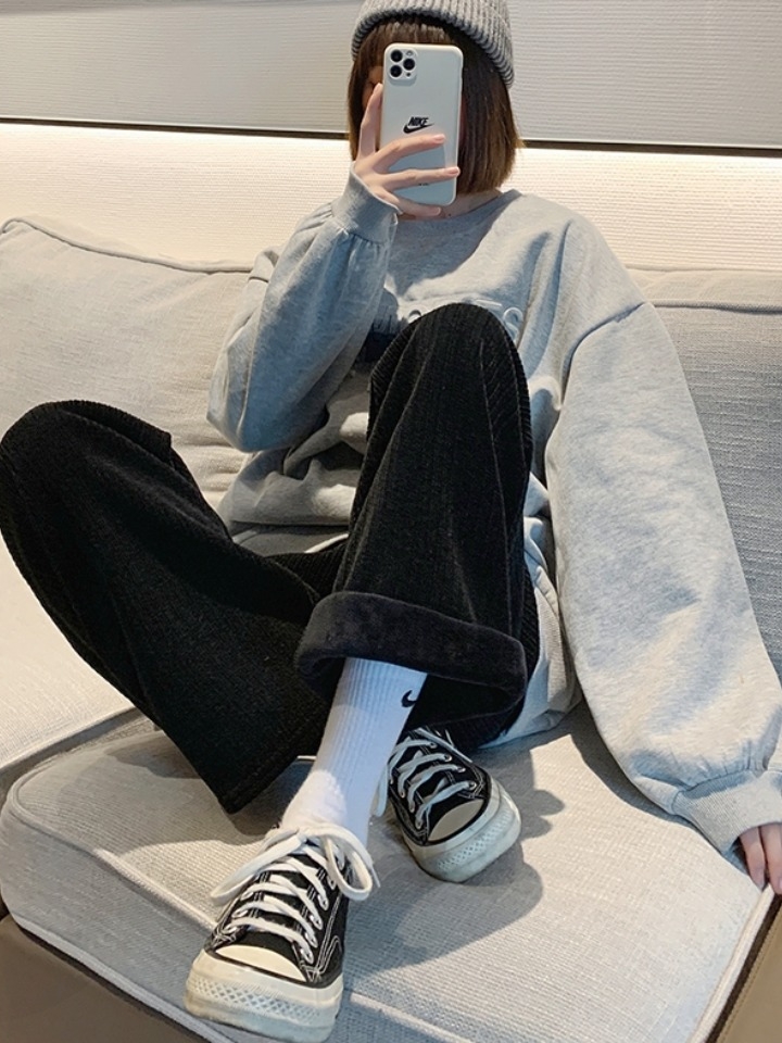 裤子的面料是灯芯绒的材质,因此在穿着的效果上是一种很时尚的感觉,而且摸着比较厚实,所以呈现出来的效果会更加立挺,也很适合在冬天穿着,裤子在设计还加厚了一些,所以感觉会格外的不错。