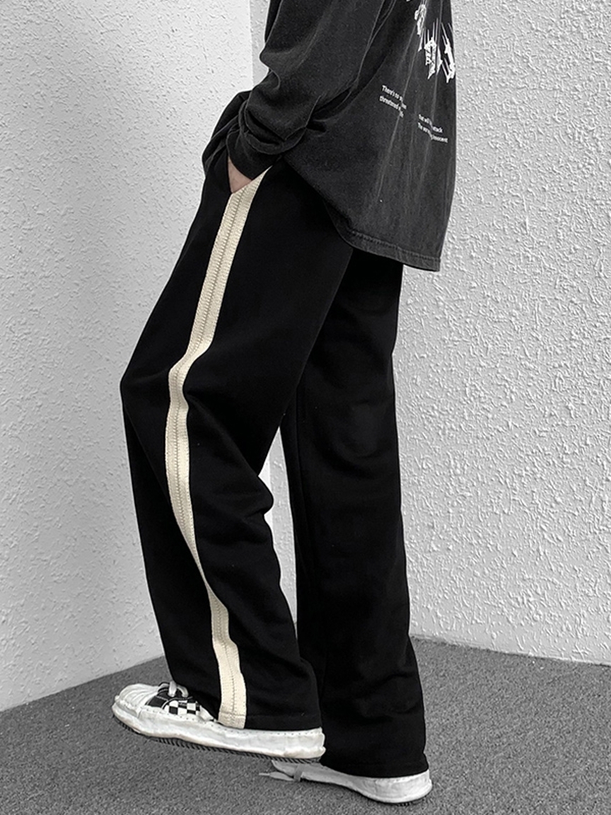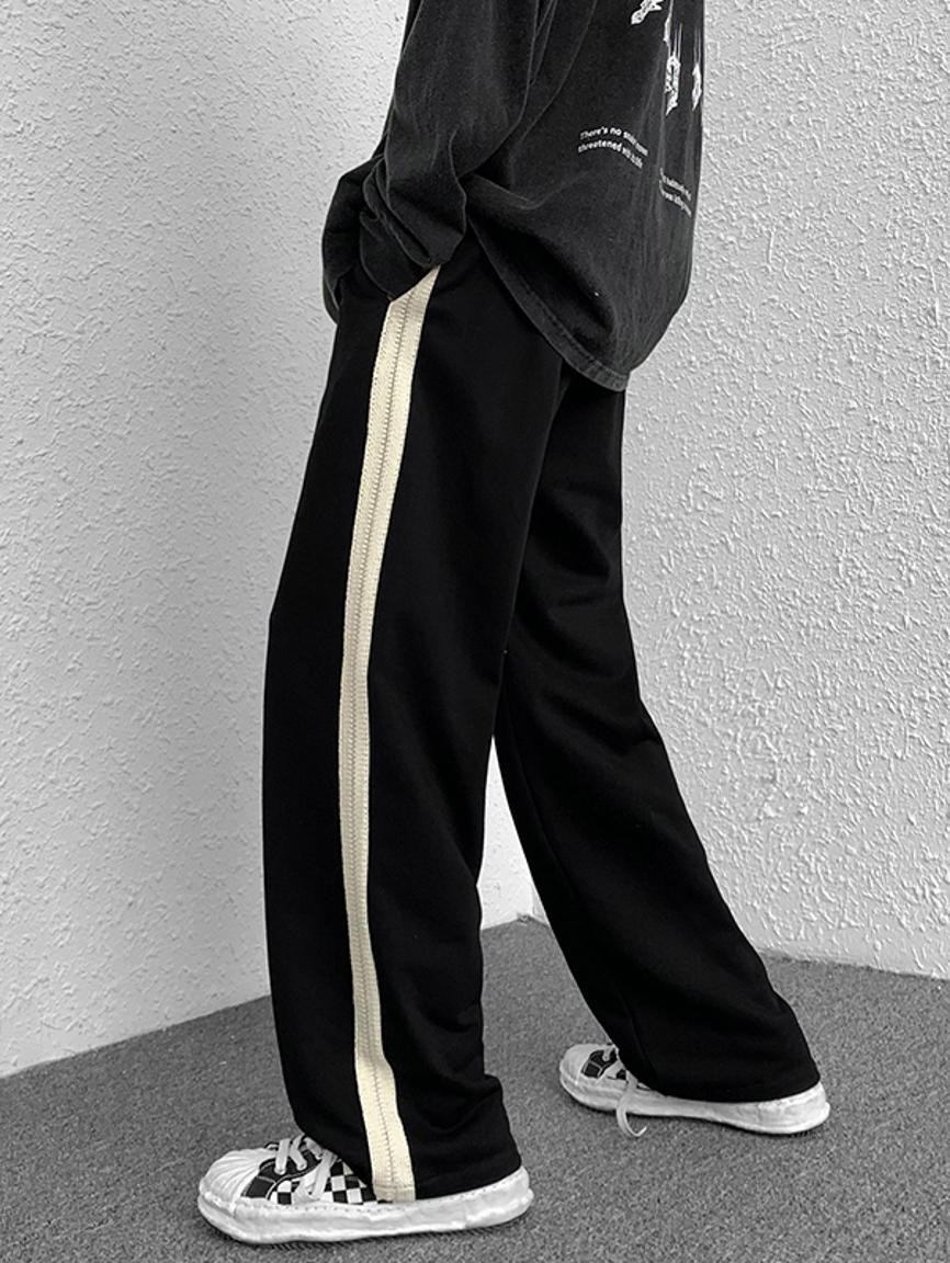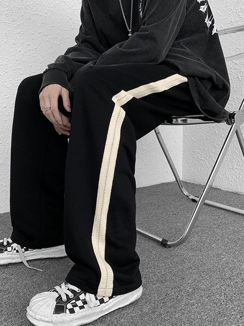 很有运动风格的一款卫裤,它真的是凸显潮男们活力的利器,而且阔腿的裤型,穿在身上不仅显瘦,还自带几分随性感。