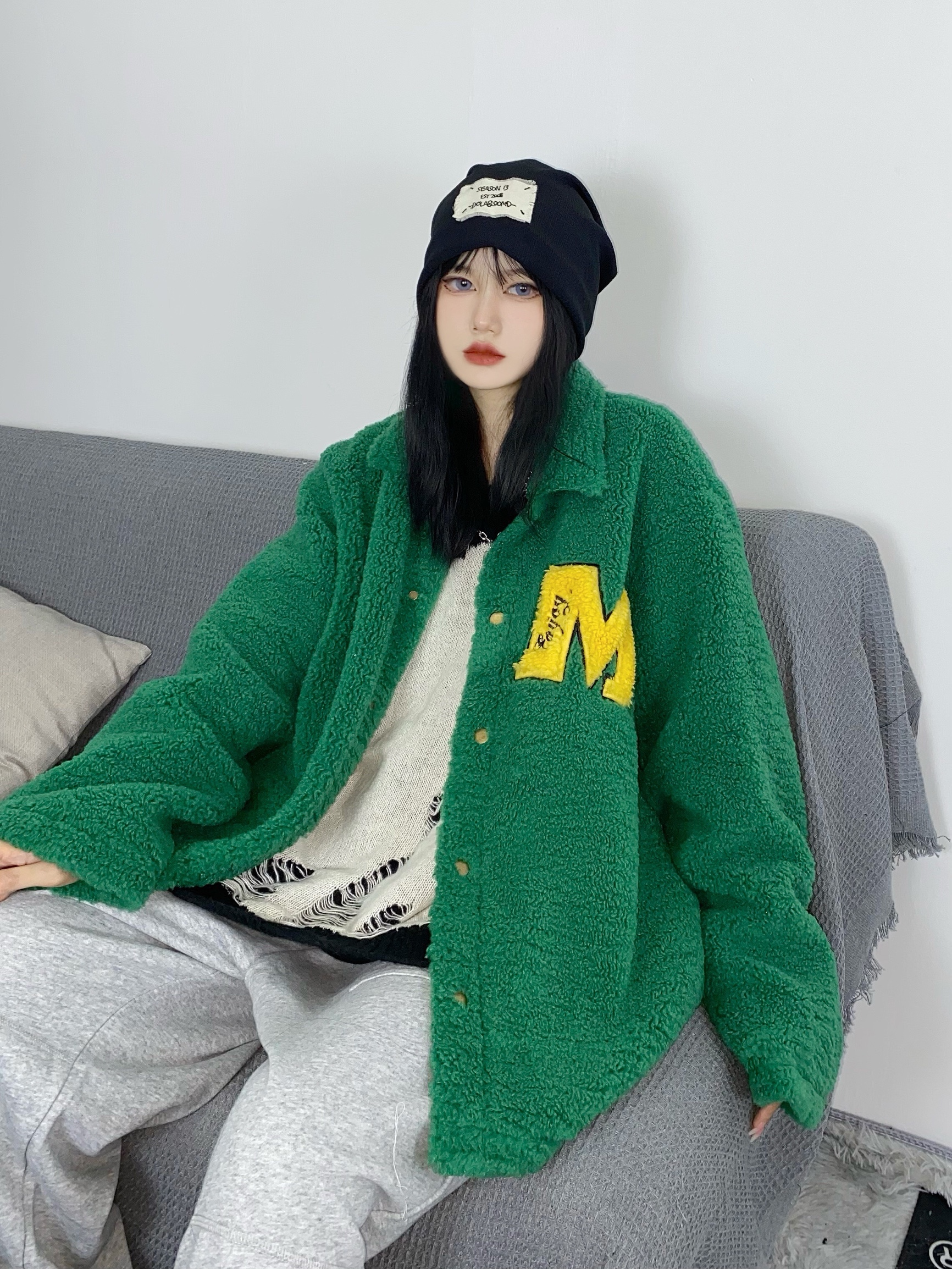 浓浓国风字母点缀在这件外套上,柔美与休闲和谐的出现在同一件衣服上;羊羔绒的温暖,凹造型的同时也不会害怕寒冷啦!