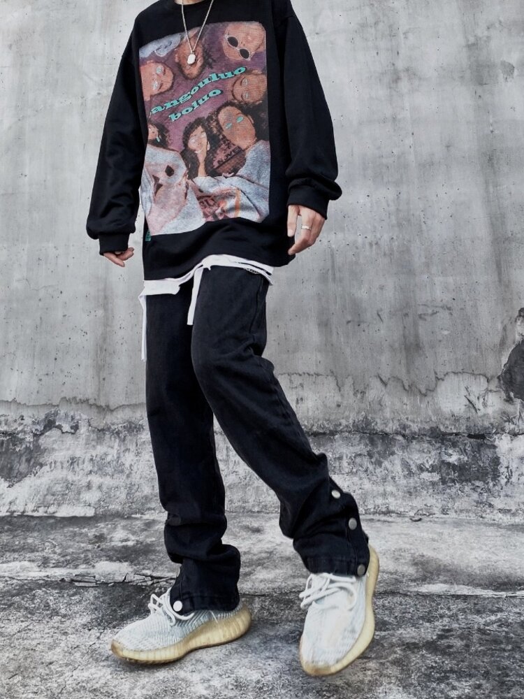 简单利落的直筒版型,穿着舒适,活动自如,适合各种身形穿着。科技感的印花元素与INXX字母呈现出迷幻未来的神秘感。