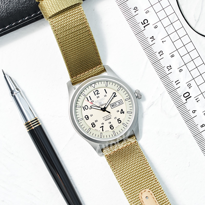 这款Seiko 5自动机械表,采用人工合成蓝宝石镜面材质,具有良好的防水性,防刮耐磨。