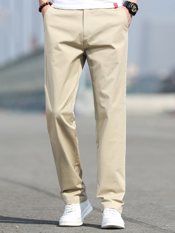 经典的休闲裤,可当成西装裤来穿搭,舒适的面料制成让你穿着亲肤透气,宽松的版型轻松遮肉显瘦,拉链开合设计方便穿脱,给你带来舒适的穿着体验。