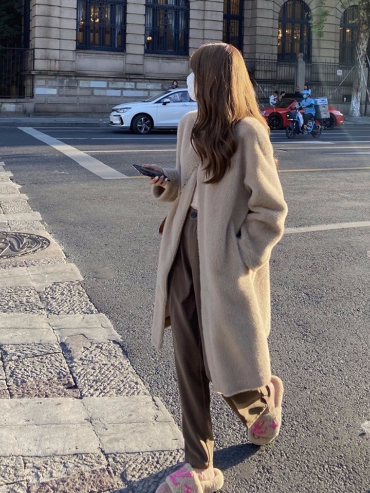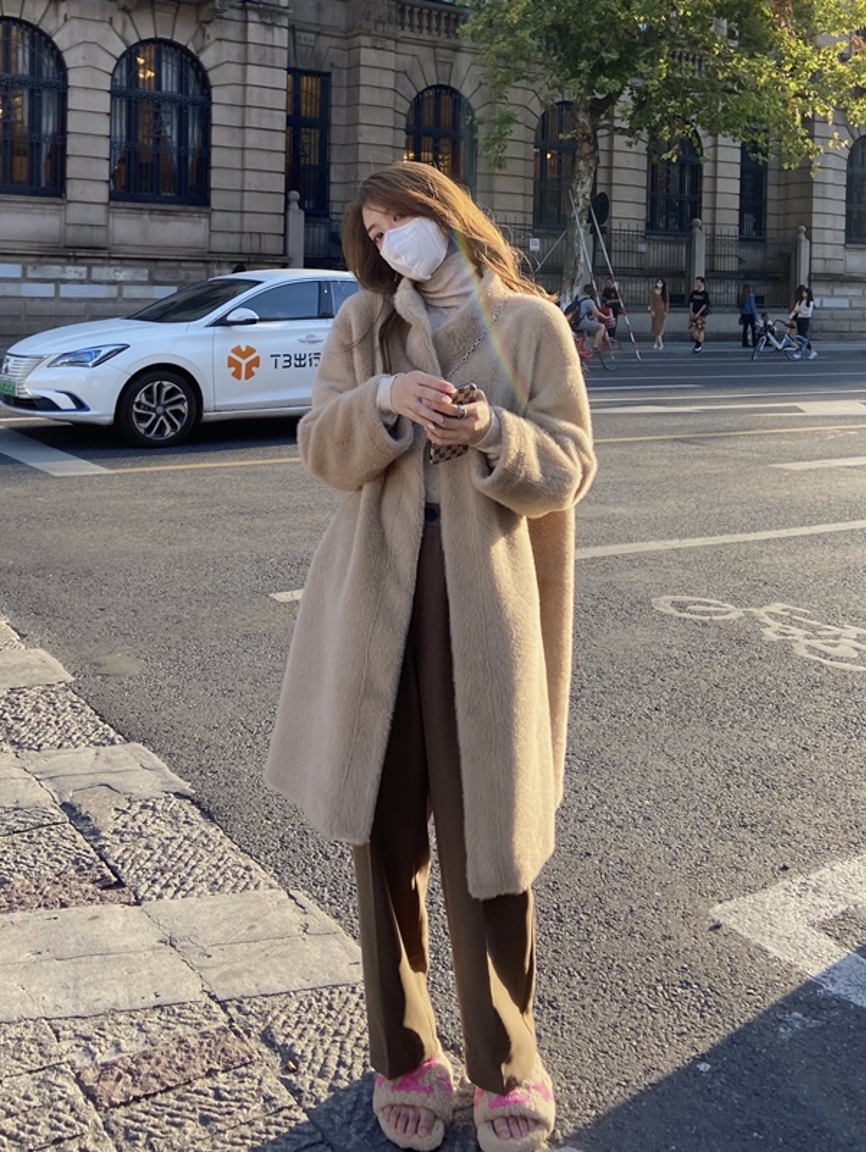 环保的貂毛绒外套,上身保暖性也非常的不错,双侧口袋沿分割线裁剪,柔软内里呵护双手,温暖实用,随意一款内搭,就能打造毛绒视觉的时尚造型。