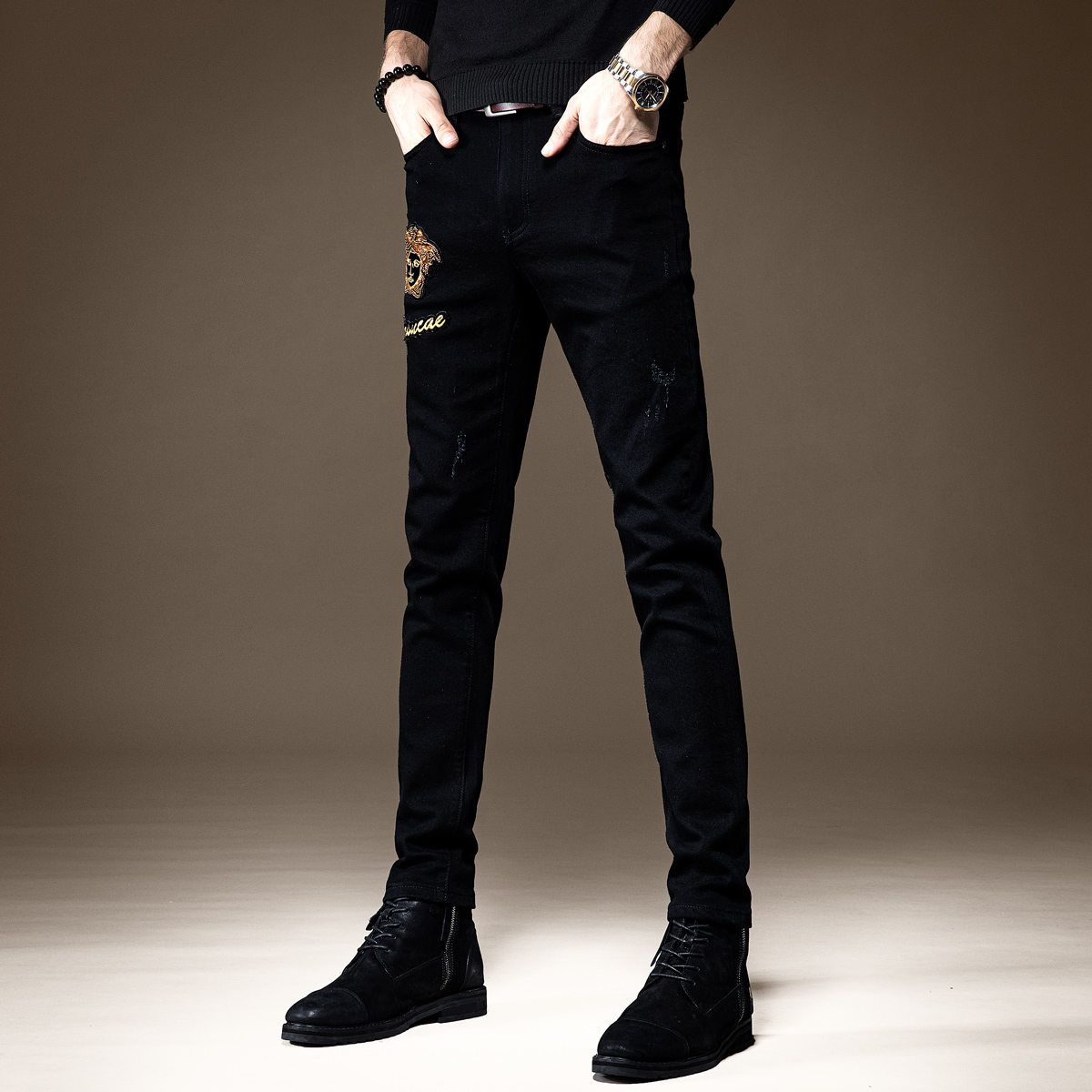 修身版型,凸显身材曲线,牛仔裤,穿着舒适不紧绷,黑色的色调,经典又百搭,弹力适中,穿着舒适自在。