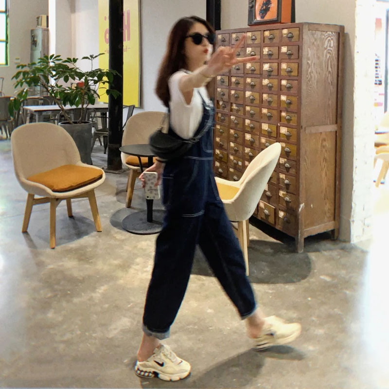 这款背带裤是今年流行的款式,宽松的版型,很好的修饰腿型,显瘦又显高,搭配一件T恤,就能轻松穿出时尚感。