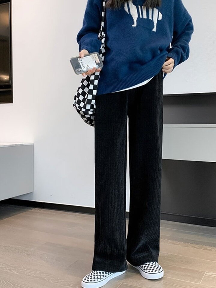显瘦又显高的灯芯绒阔腿裤,精选灯芯绒材质打造,肌理感细腻,手感柔软,穿着保暖舒适,裤腿个性裁剪丰富整体设计细节,完美修饰腿型轻松显瘦。