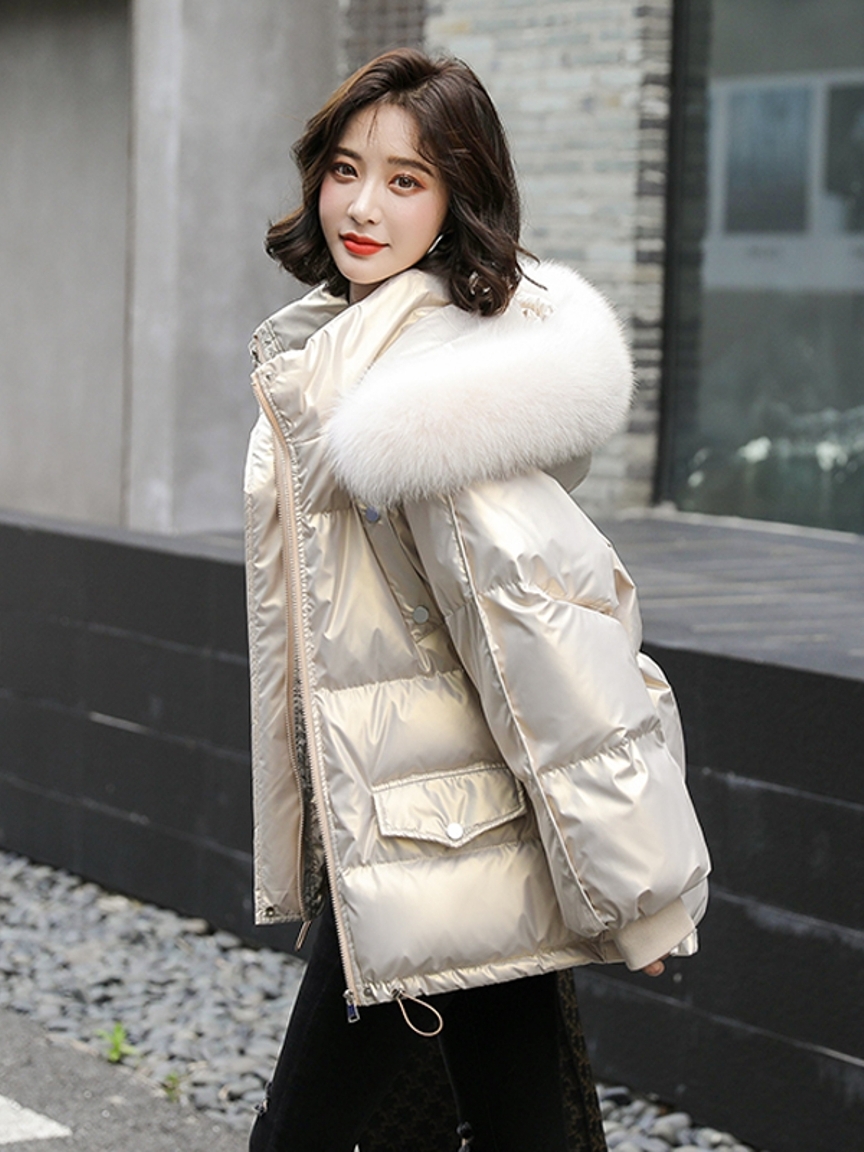 这件羽绒服在颜色上选用了白色,清爽干净,毛绒绒的翻领领型,增添了俏皮感,少女人十足,让你的脖颈倍感软糯温暖,适中的版型剪裁,充满着优雅从容的气质。