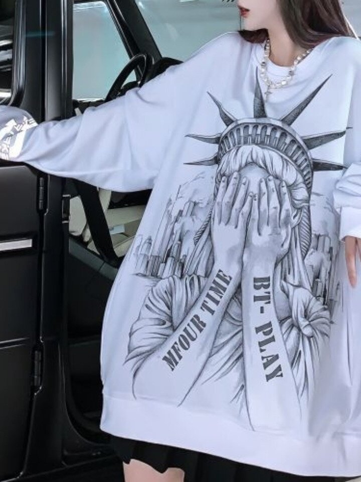 圆领很好的露出女性颈部的柔美,螺纹打破波普图案有层次感而又帅气俏皮,肩袖处类似拼接起的长袖,整体给人感觉时尚俏皮的一款卫衣