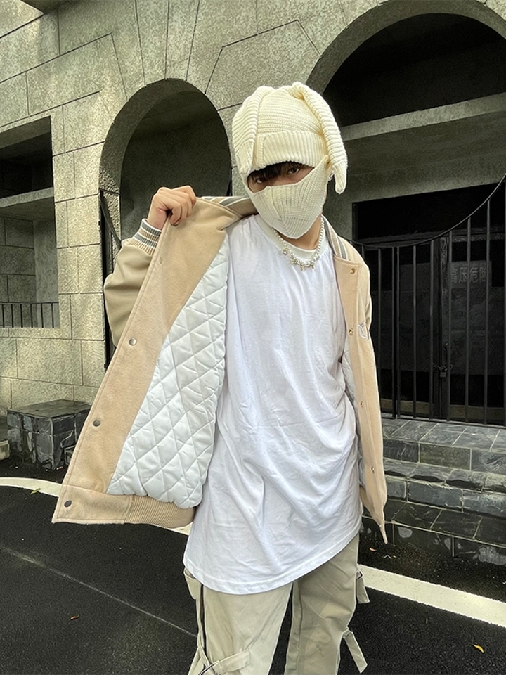纵观近年来的时尚界,棒球服是出镜率最高的单品;今冬将其以复古的形象带出,配合夹棉的处理,为你柔和秋冬的凄凉感;墨蓝色与灰色的拼接处理,时髦感也是妥妥的。