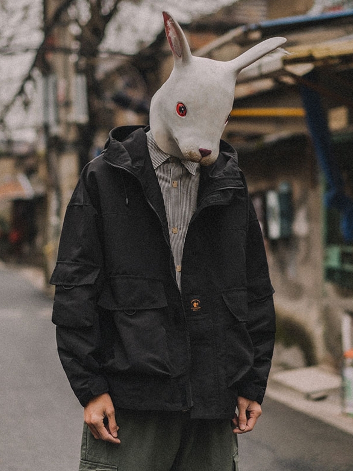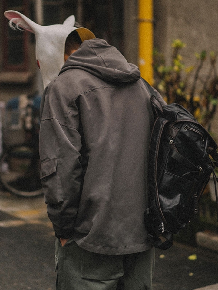 时尚潮流的连帽设计配合加入领子设计,彰显个性,铁色拼接工艺,提升了简约大气的格调,下摆设计给衣身增添了几分趣味。