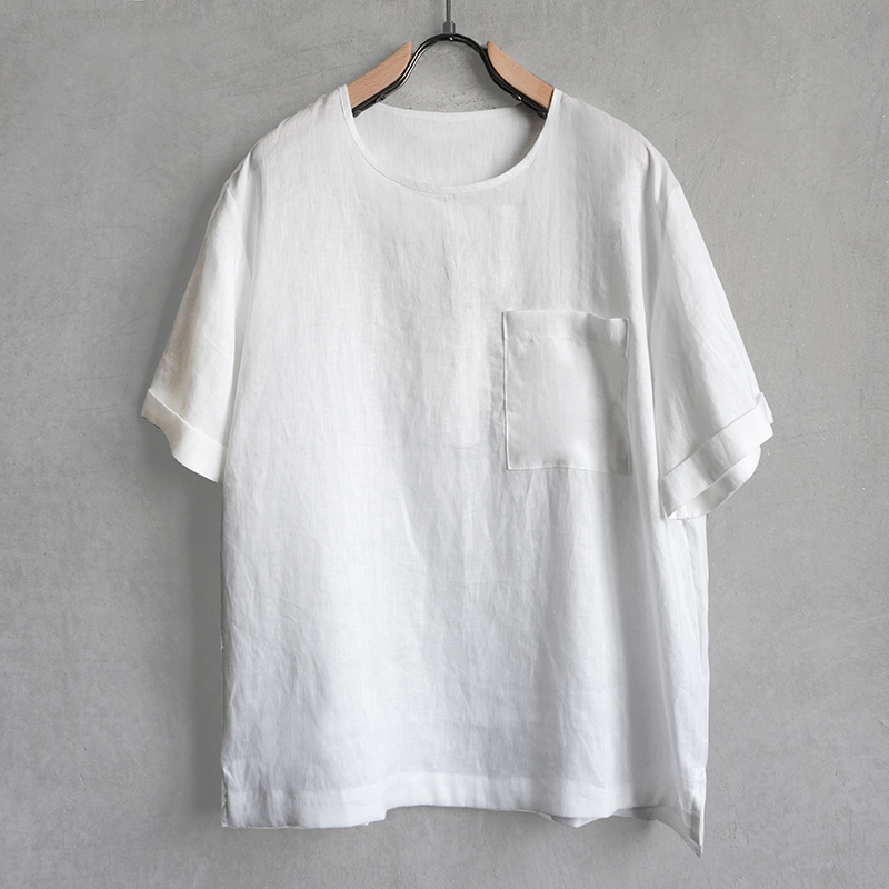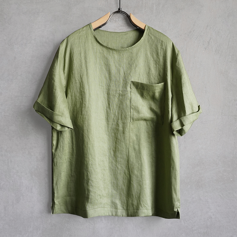 宽松T恤,让你轻松驾驭,纯色的色调,简约又百搭,亚麻材质,穿着舒适透气,短袖设计,修饰手臂线条。