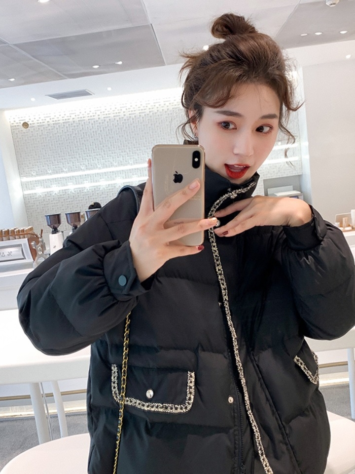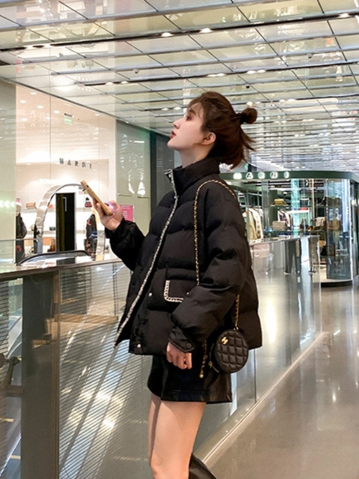 修身小香风短款棉衣,时尚衣领设计,性感灵动,更具有动感,让衣服更加大气。简单的衣袖设计,完美的展现出衣服的品质和干练气质