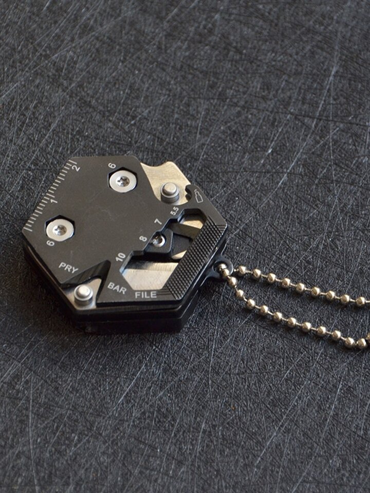 采用食品级ABS料,高碳钢材质,集内六角扳手螺丝刀等六种功能,16PC配置,能应付多种状况。