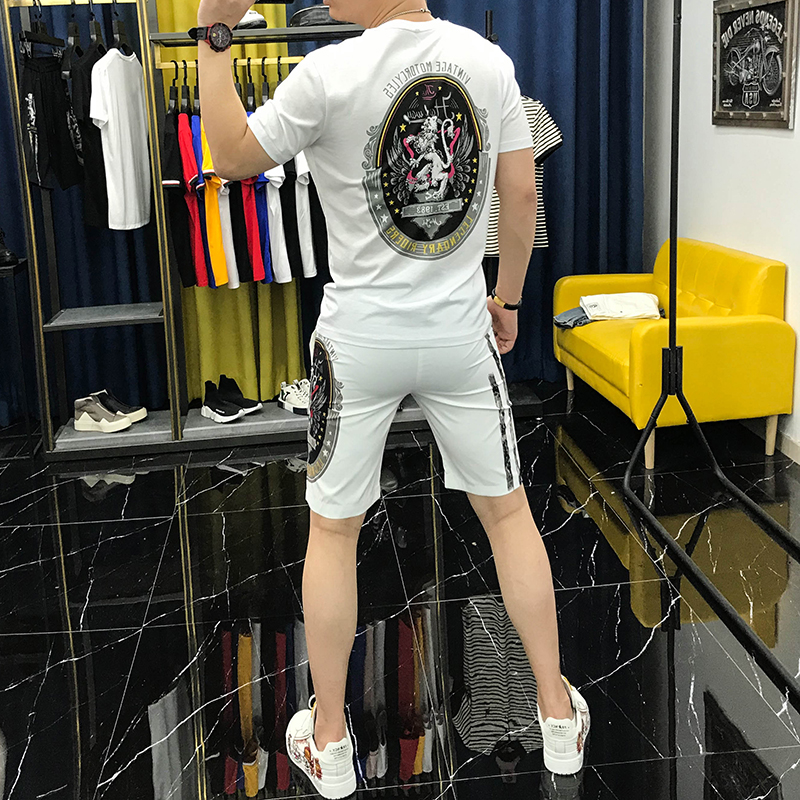 运动套装,采用了经典的圆领设计,搭配上精致的刺绣图案,彰显了男士的时尚魅力。