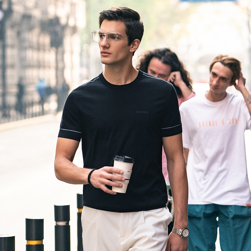 简约的高腰设计,搭配上修身的版型,上身显瘦又显高。