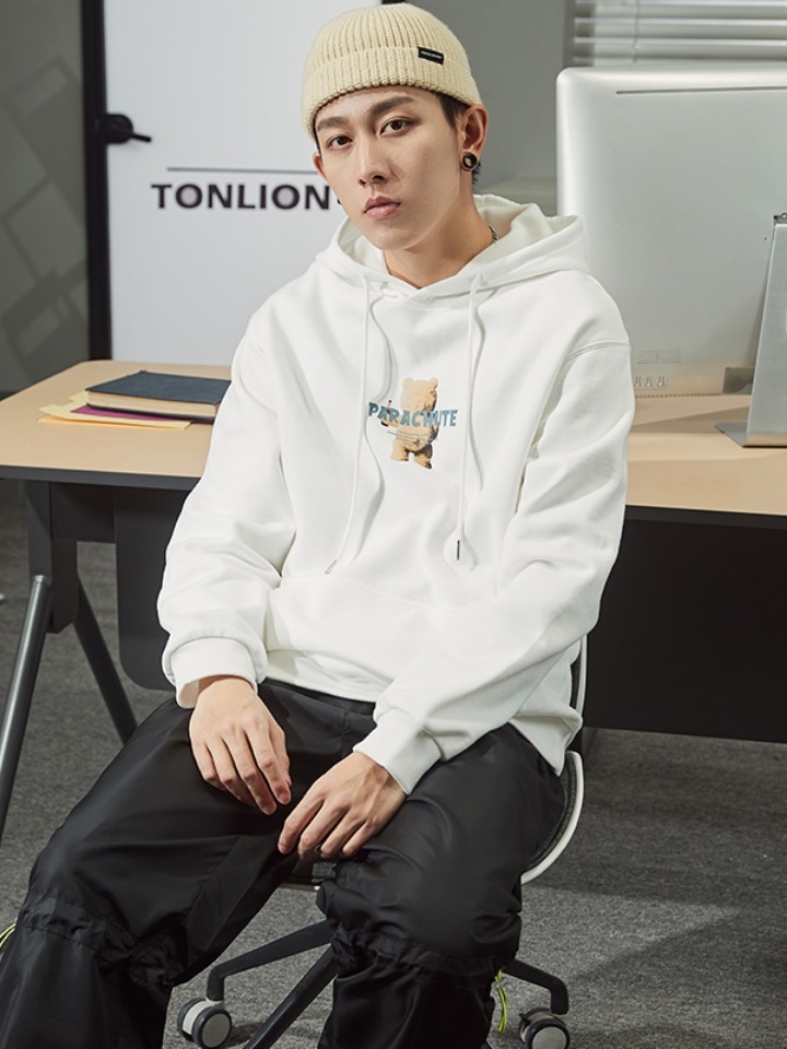 连帽印花套头帽衫连帽设计彰显一丝慵懒、休闲style,印花图案加以点缀白色衣身,充满层次感打造街头运动风。