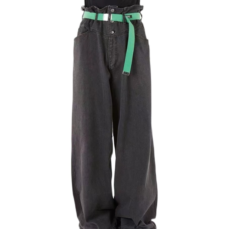 高腰设计,拉长身材比例。高腰牛仔裤,显瘦显腿长。直筒裤型,修饰腿部线条。