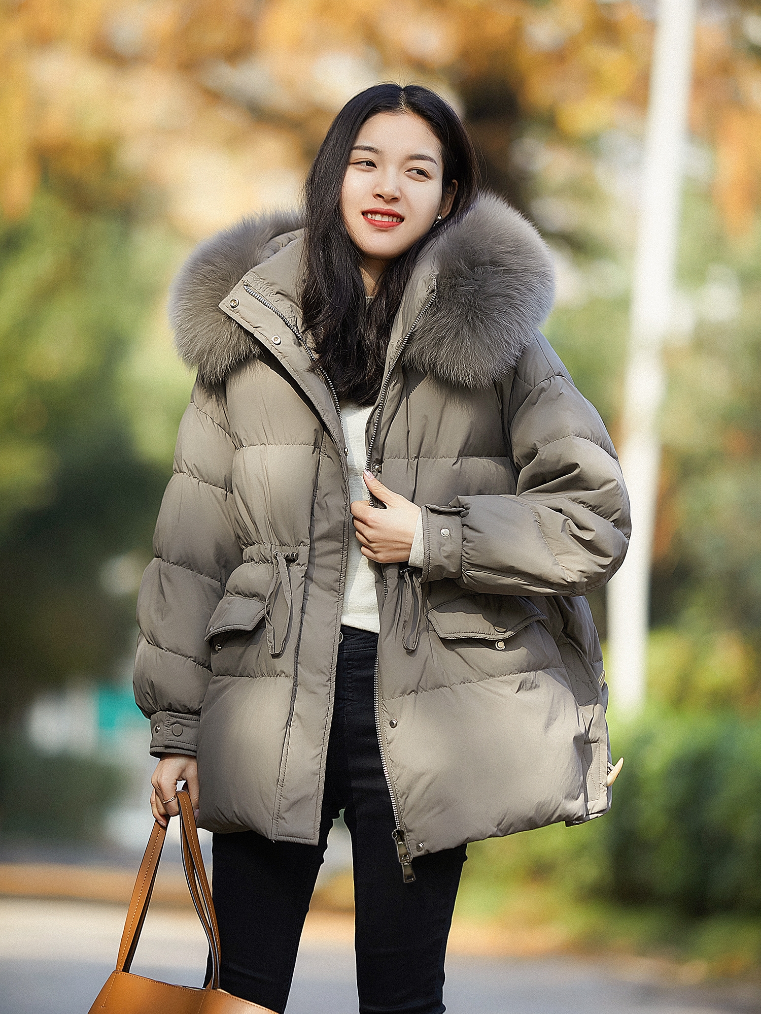 此款羽绒服选用防羽绒穿刺面料,时尚舒适保暖且质地细密。内置鹅绒填充物,蓬松轻盈又保暖。多道车工走线压缩设计,美观精致,修身显瘦,拒绝臃肿。