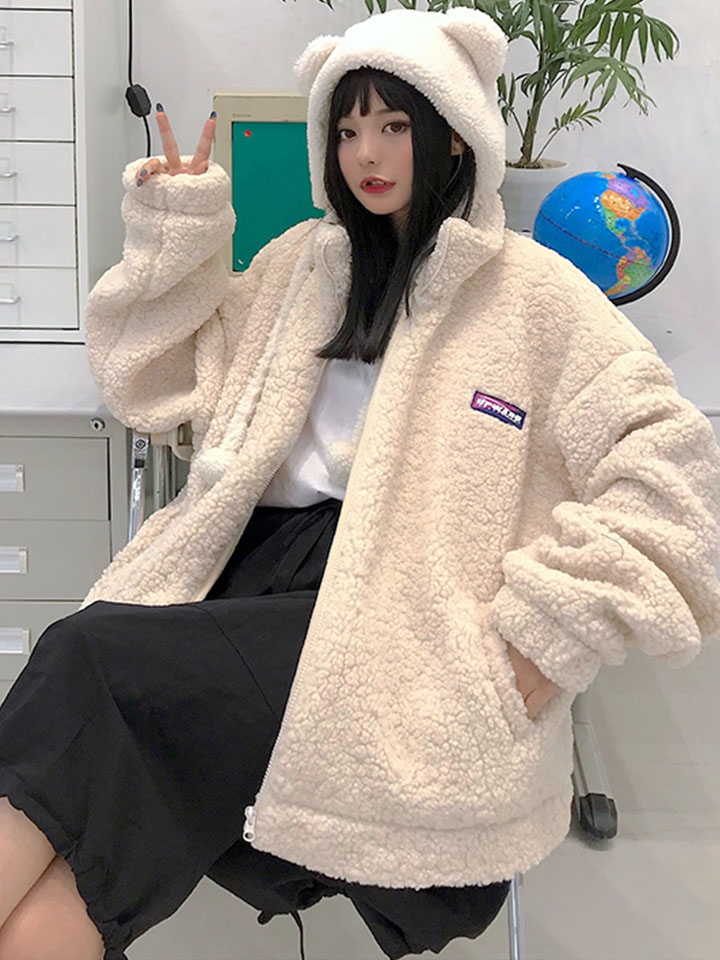 软软糯糯好可爱,穿上好保暖!好舒服,版型很好,穿着没有束缚感,oversize版型,码子偏大的,里面可以加很多衣服!实用性和颜值都非常的赞,我很喜欢,还会再来买的。