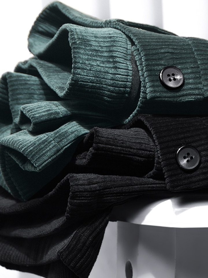 质量很好,穿起来也很有型。这家店关注很久了,一直没有失望过。。很厚实的灯芯绒长裤,给人带来丝丝缕缕的暖意,宽松的廓形搭配极富设计理念的竖条纹肌理。