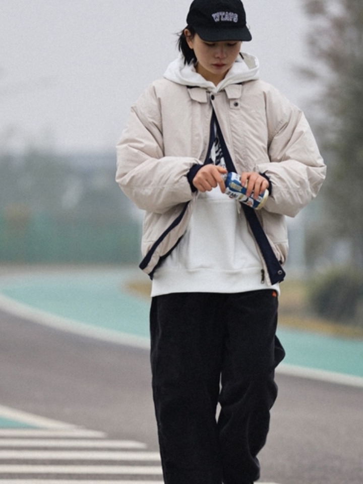 秋冬必备的厚实外套,不止保暖,时髦度也很高哦~ 出了经典百搭的黑色和军绿色,独具个性且深色也非常耐脏。中长款的版型让身材看起来更加高挑,矮妹也无压力的哈~衣服的面料光滑舒适,厚实的填充手塞棉保暖性很高。大大的方形口袋不仅让衣服看起来更加有设计感,也非常实用。