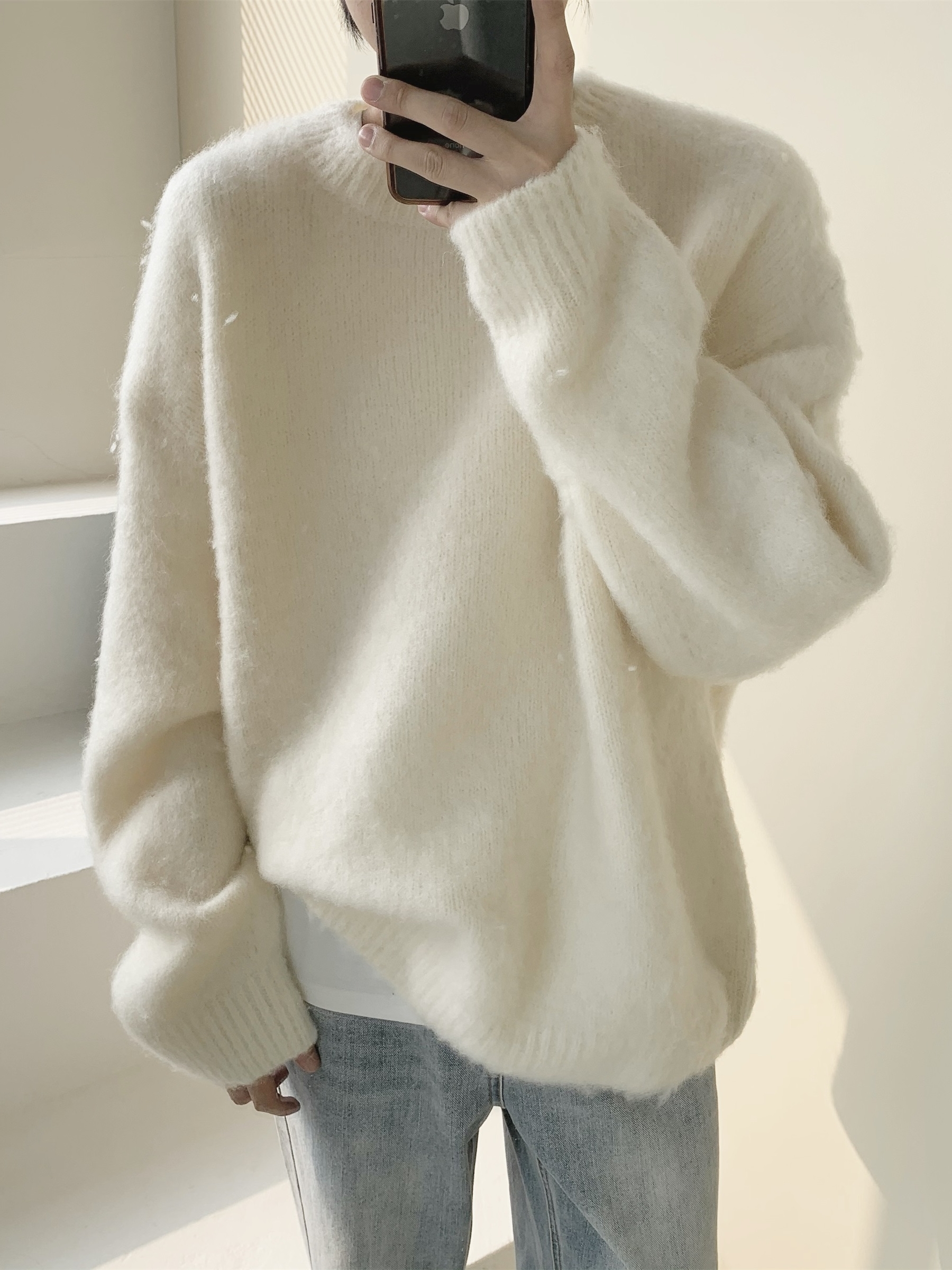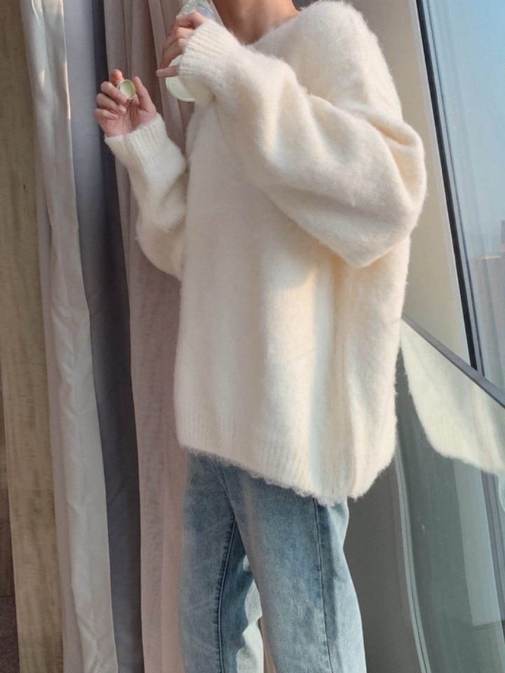 简单干净的白色针织衫,清新舒适养眼,时髦又百搭的。超宽松的样式,完全不挑身材,穿着舒适自在又洒脱自如,增添一丝慵懒随性的感觉。不论是搭配裙装或裤装,都超有范又时髦的哦。