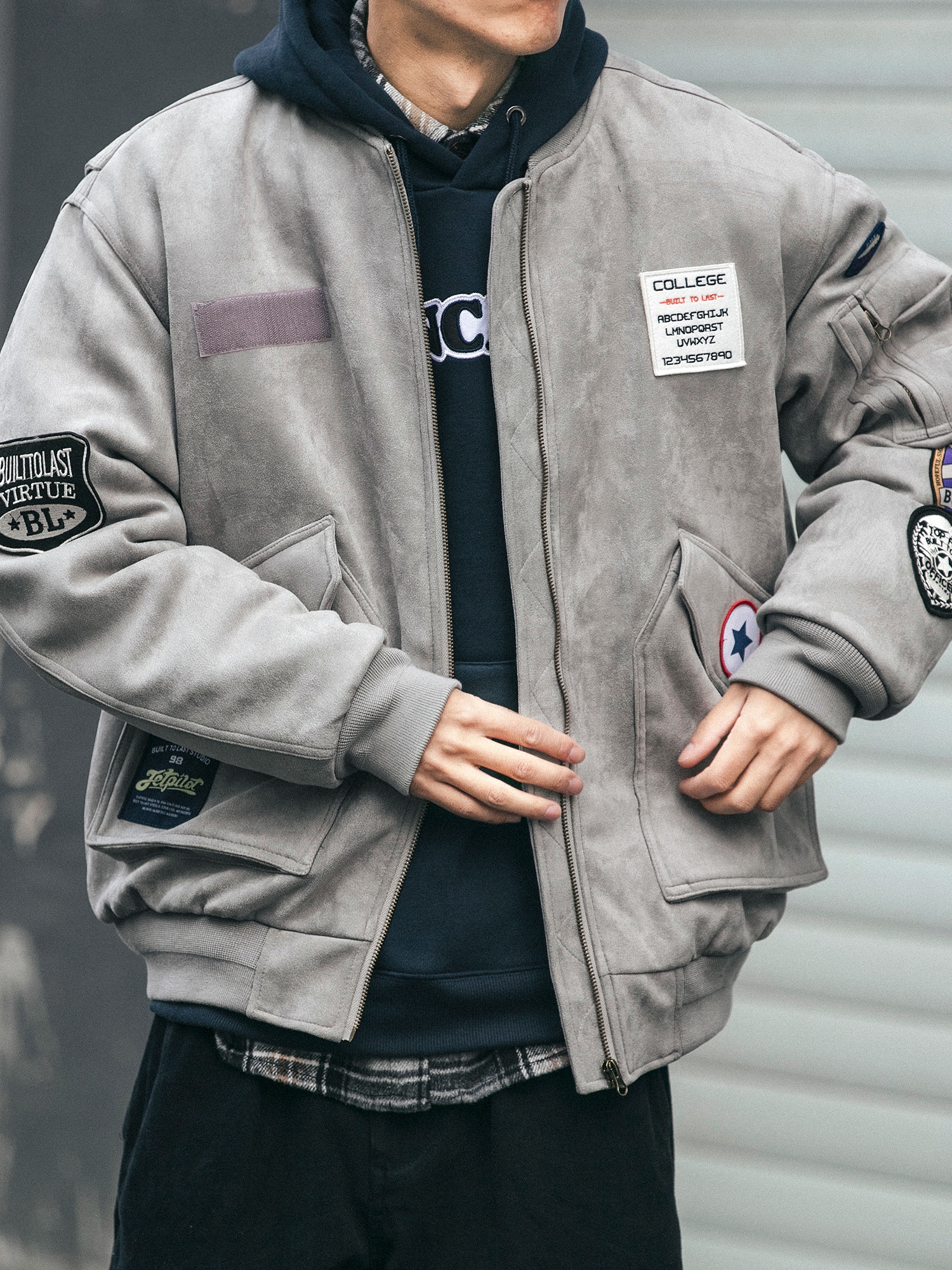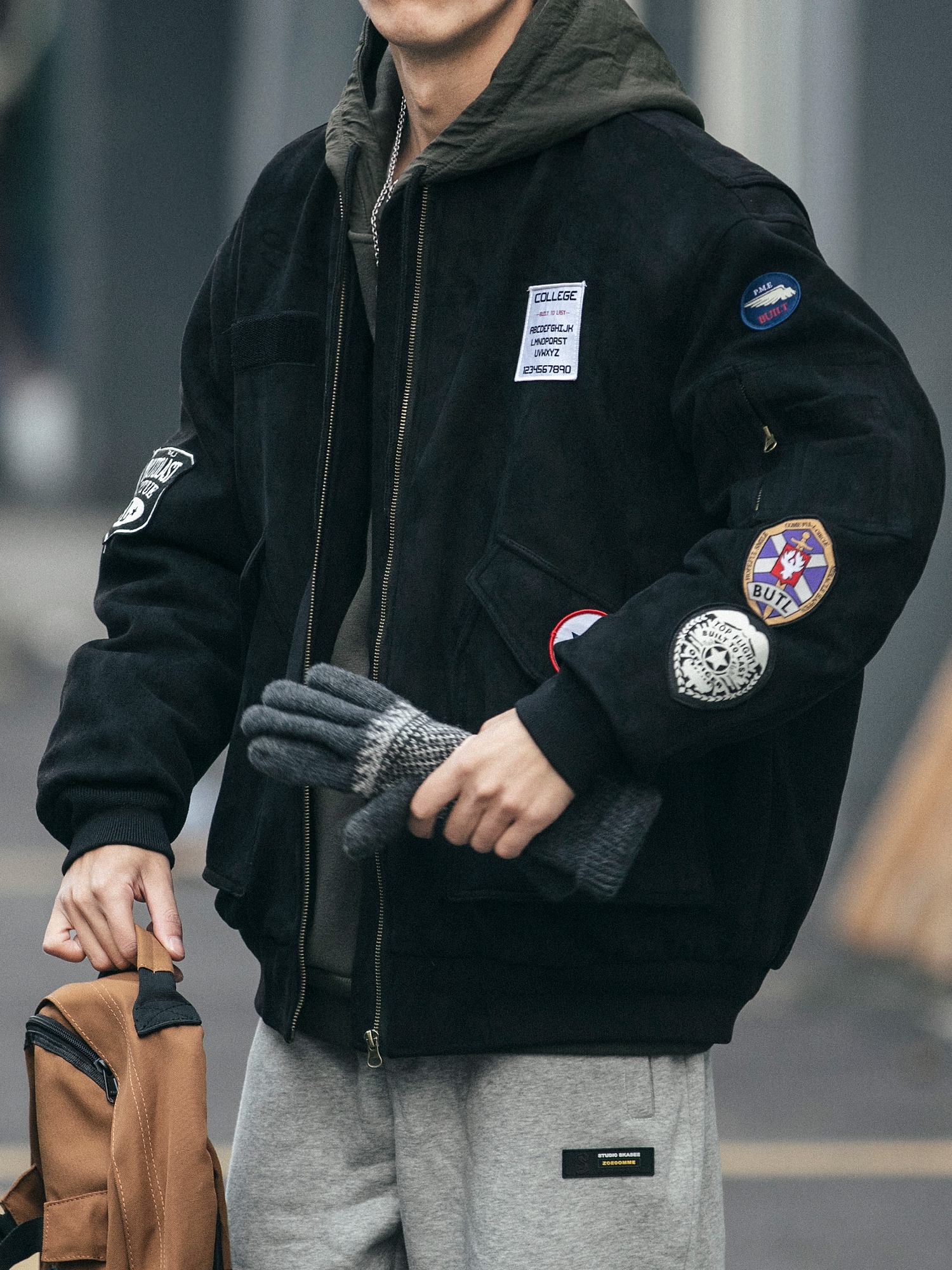 飞行员棒球服夹克外套n时尚大气的棒球服版型,上身尽显街头潮流的气息,清新的白色系点缀贴布设计,增添了潮流前卫感。