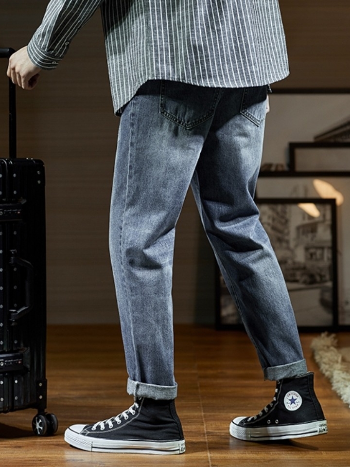 简简单单的一款直筒牛仔裤,没有任何时尚元素的 修饰,却有一种让人难以抗拒的时尚感,有时候,简单就是一种时尚。