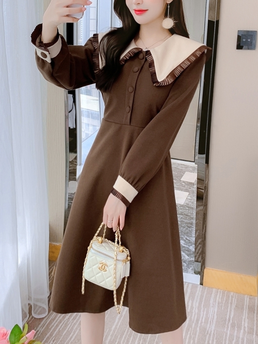 颜色别致,收腰与褶皱设计包容性极强,能很好的突显女性腰部曲线,,舒适贴身,A字形的版型,尽显优雅的气质,个性潮流的咖色,精美的裙身,秒变出窈窕身姿