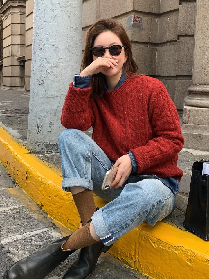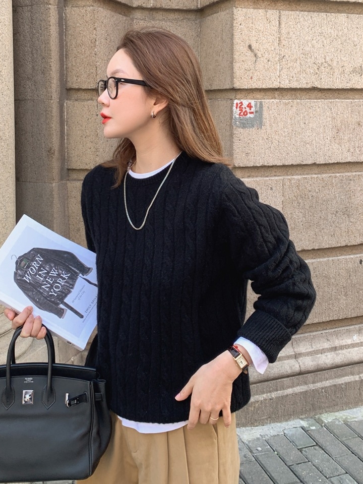 修身的针织衫的版型,经典的圆领符合人体工程学,穿着更舒适。带着不规则肌理的针织纹路丰富着造型,让穿着也不会很单调。