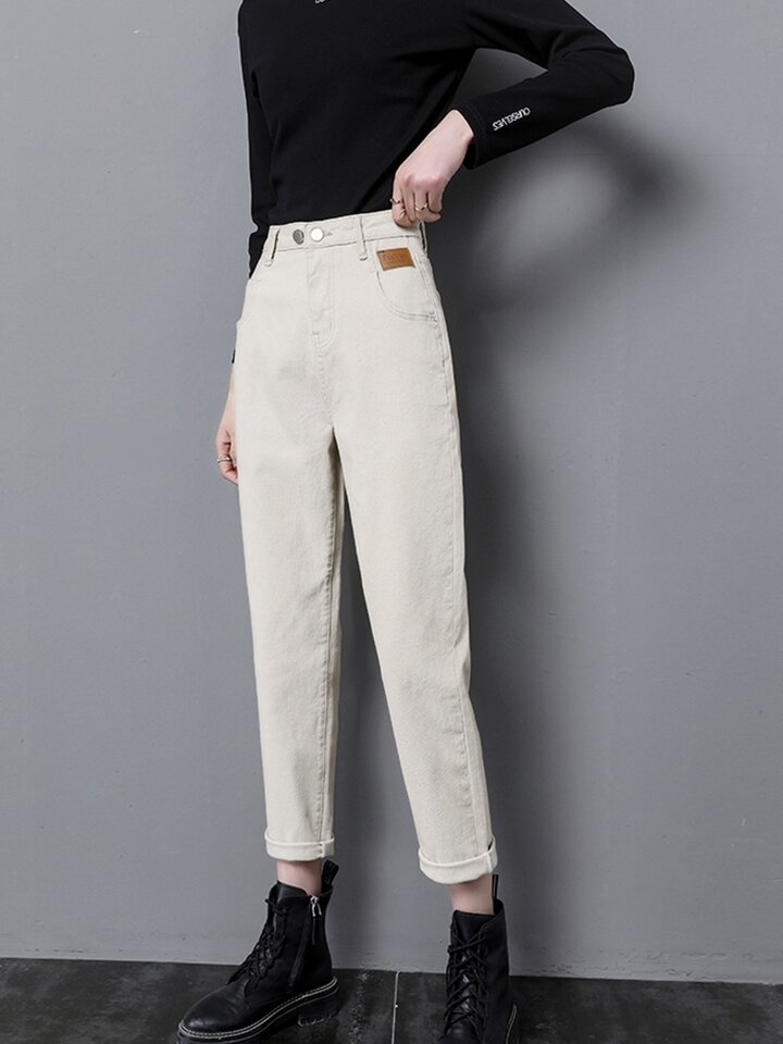 高腰版型的萝卜裤设计,巧妙地修饰了双腿的线条,呈现出垮垮的休闲魅力。腰部的竖条压褶,以及裤身磨白处理,都表达出独特的设计风格,让裤身不会过于简单与无趣