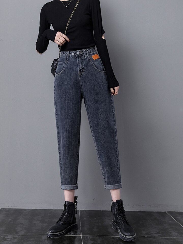 高腰裤的设计,加上萝卜裤型,可以拉长腰线,修饰腿型,让腿显得更加修长,脚口小宽松,打造出苗条迷人的美腿,黑色容易搭配,怎么穿都是一副大牌气质感