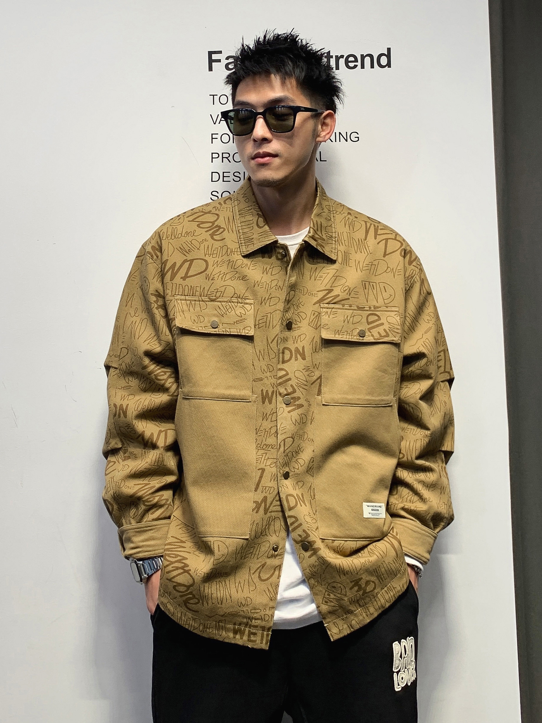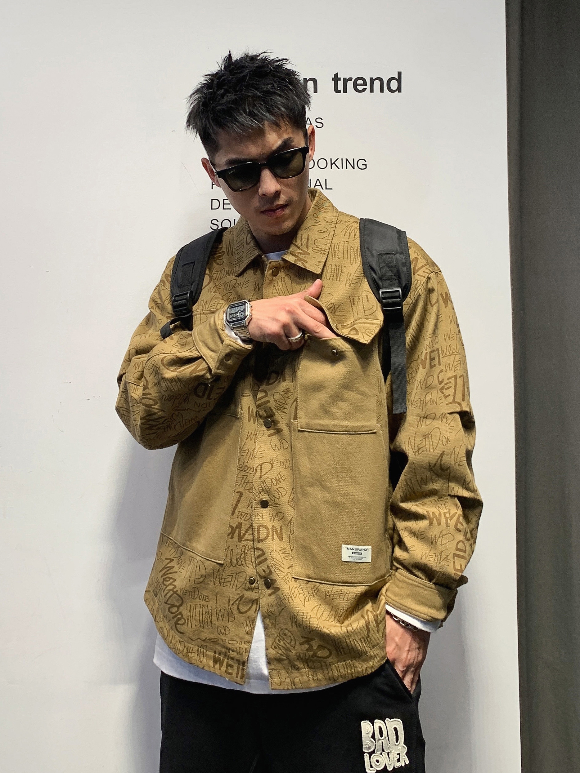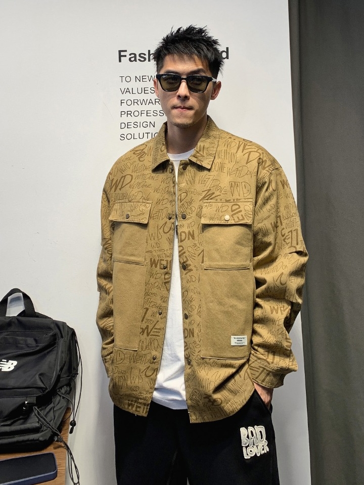 宽松的剪裁显得格外随性休闲,衣上的字母印花,很好的点缀了乏味的衣身,大口袋增添了许多复古休闲味道。