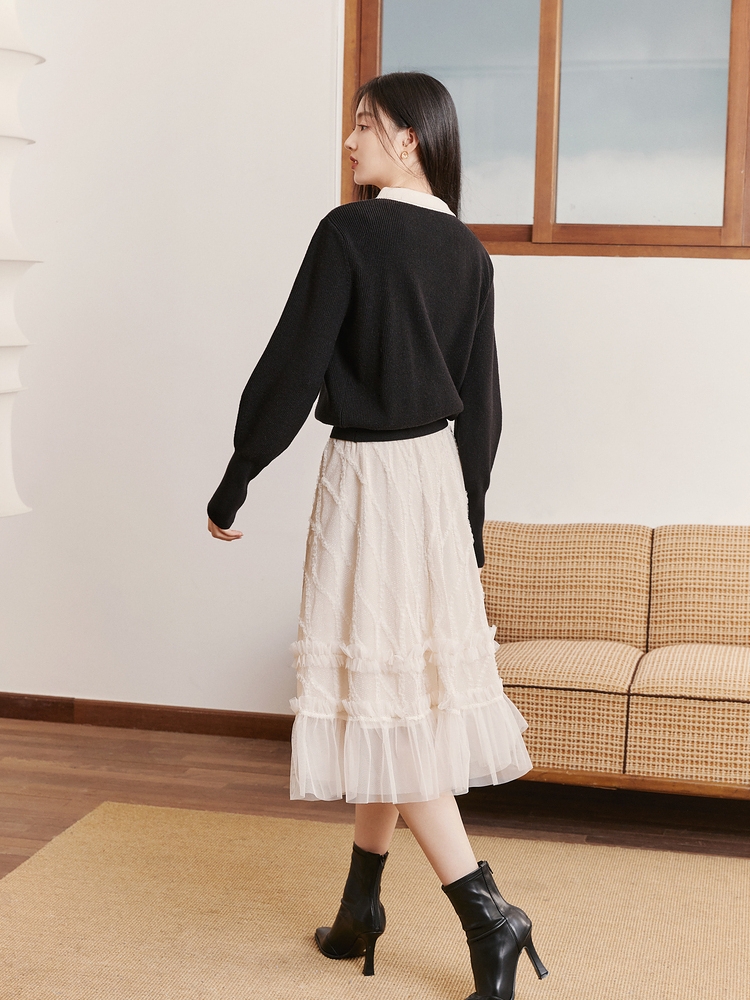 这款毛衣的整体版型微微宽松,上身不挑身材,就算是小个子也能完美驾驭。下半身再搭一条纯色系的小裙子,更显优雅大气!