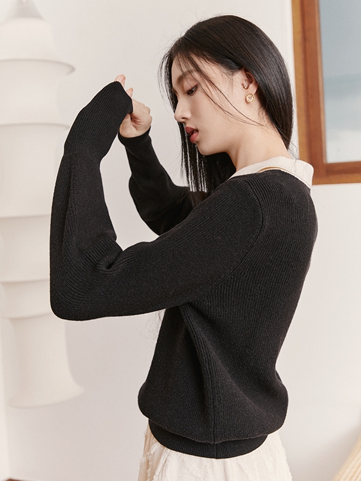 这款复古翻领毛衣是短款收腰版型,腰间还采用了针织罗纹收拢设计,上身既保暖又不显臃肿,同时还能穿出甜美俏皮风格!