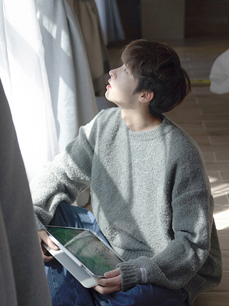 我平时出门喜欢穿上这件毛衣,下身配一条深蓝色的裤子,这样的穿搭也是非常时髦的,它使我看上去比较有精神,比较利索。