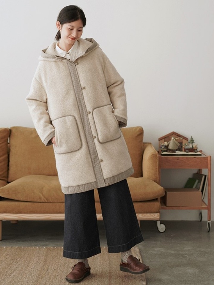 超级宽松的款式后少年宫连帽设计休闲的慵懒气质厚实饱满的羽绒填充,轻盈舒适保暖很时尚。