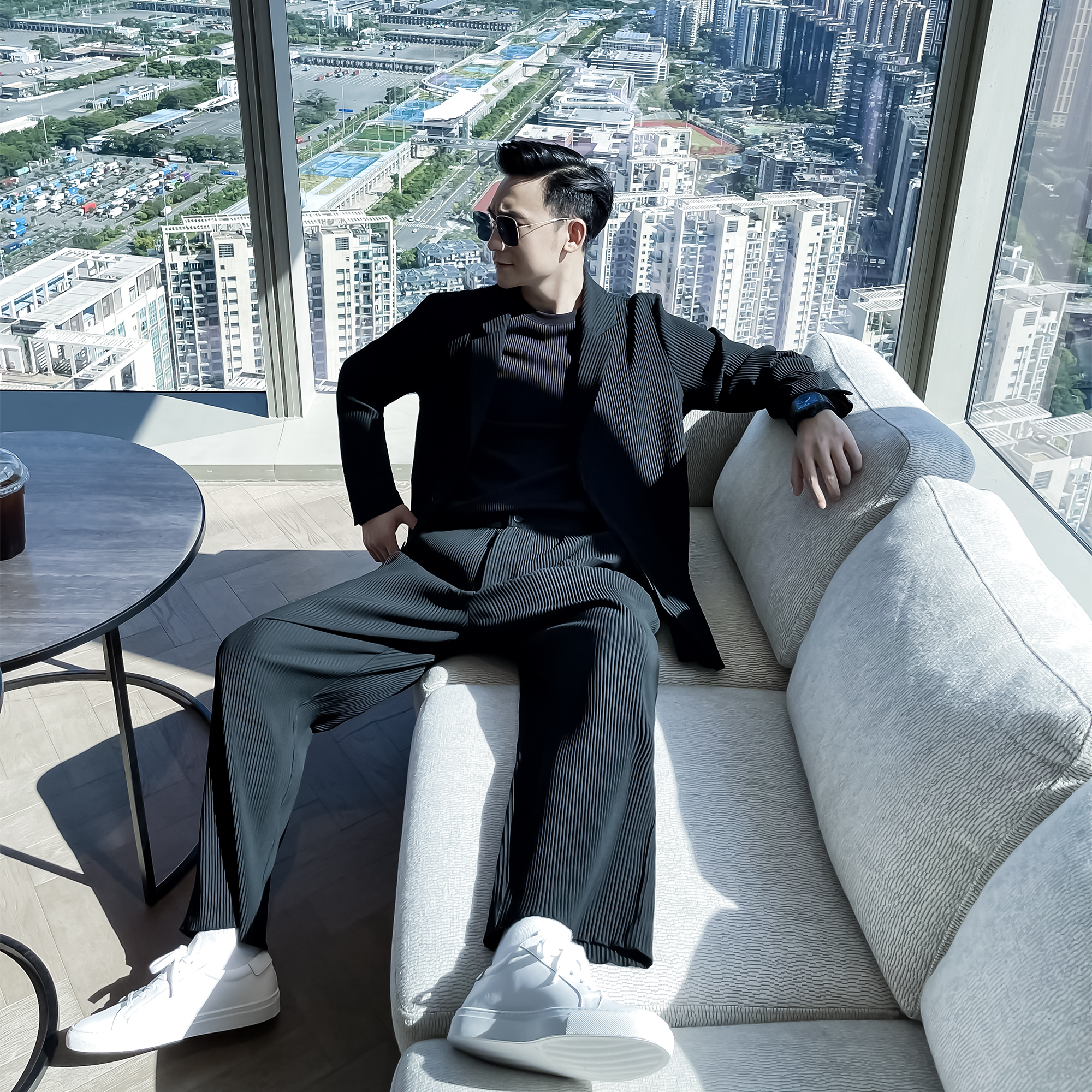 西装外套使用聚酯纤维、粘胶纤维两种安全材质,贴身的衬衣使用的是柔软亲肤的面料