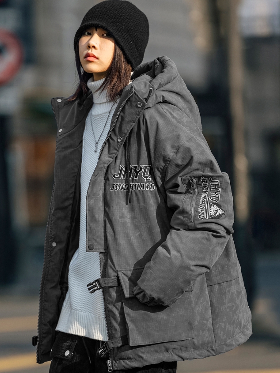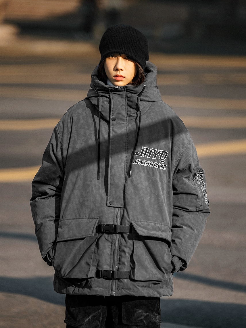 净化眼球工装款式的立体口袋撞色连帽工装大大减少了衣服的单调感,更显立体层次。保暖连帽款式不挑身材。整件外套简单立体好搭配,各种身材均可轻松驾驭。