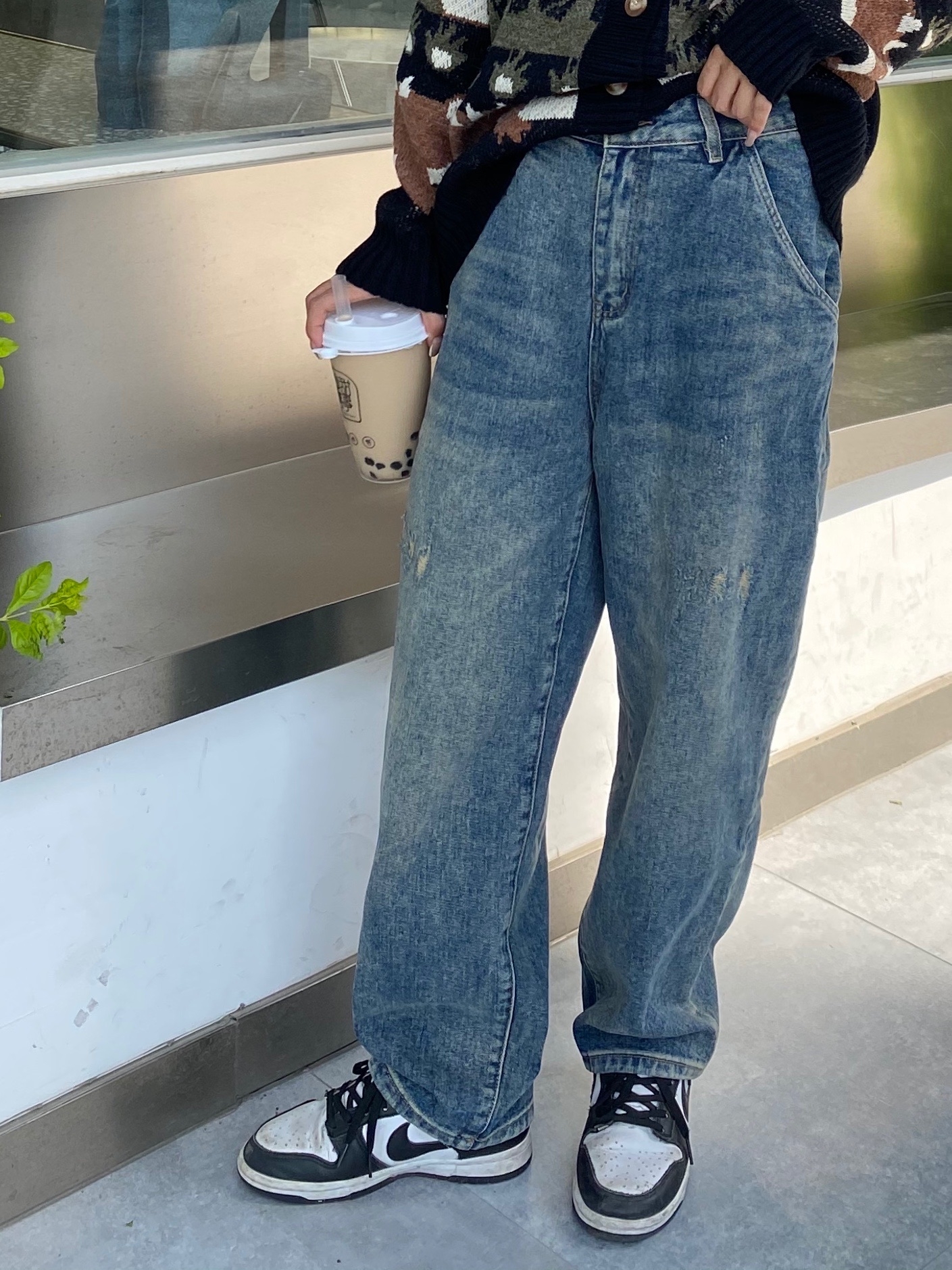 牛仔裤是每个型男衣橱中不可缺少的时尚单品,宽松直筒的裤身加以了做旧水洗的处理,散发出典雅复古的韵味感,上身尽显不羁帅气的型男魅力。破洞的铆钉加持,丰富了整体的视觉效果,尽显个性时髦的腔调感。