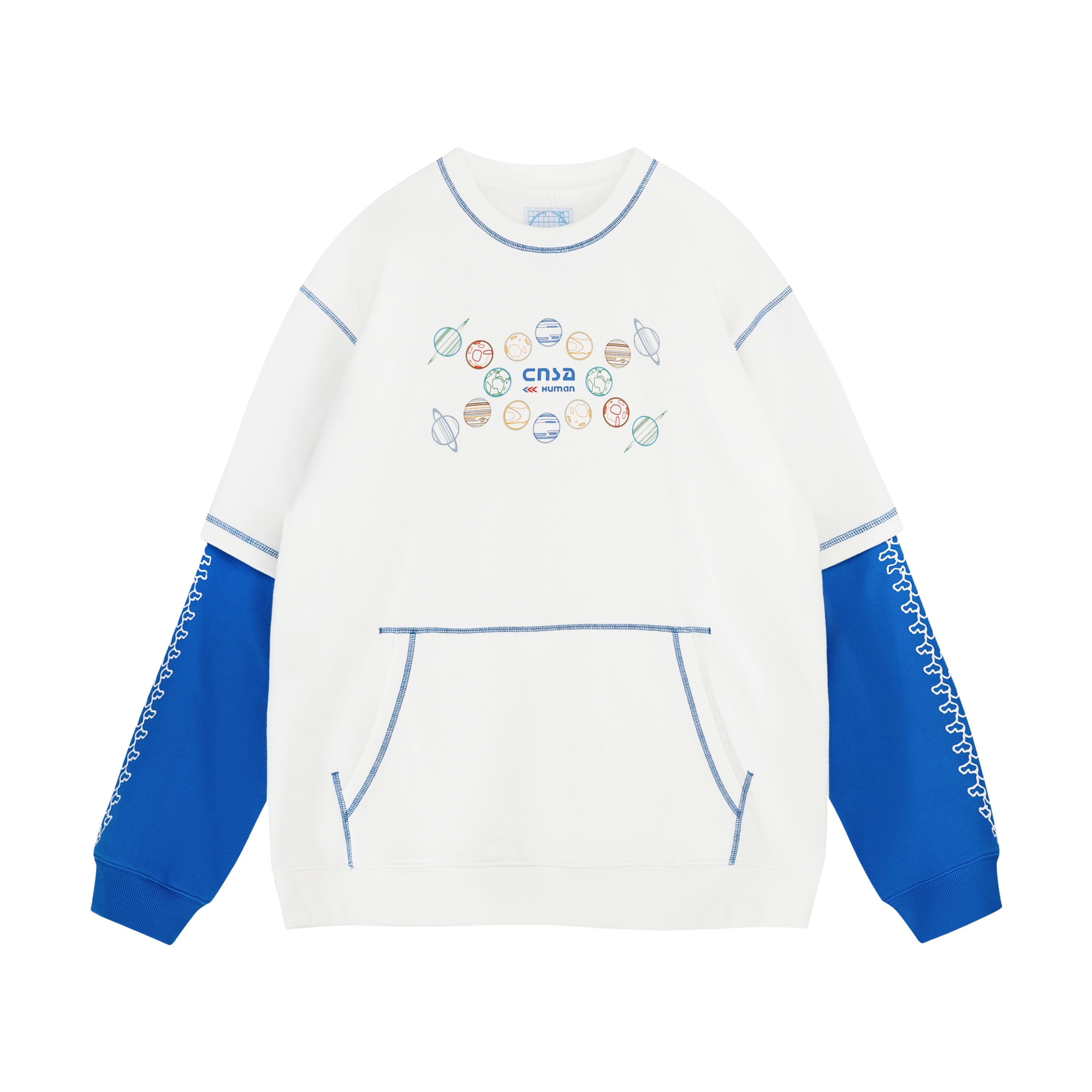 假两件设计,丰富层次感,联名设计,彰显品牌魅力,宽松卫衣,穿着舒适自在。