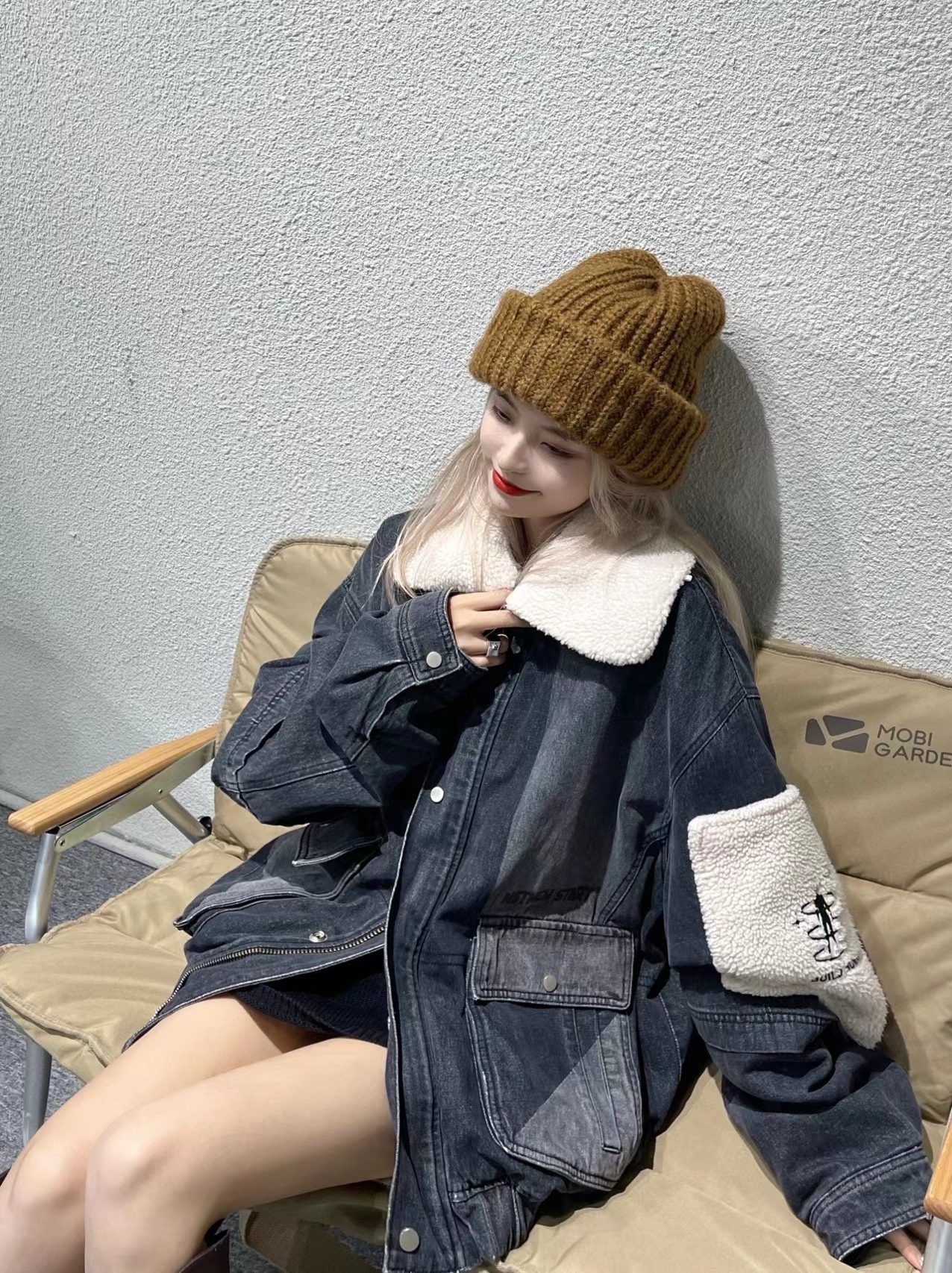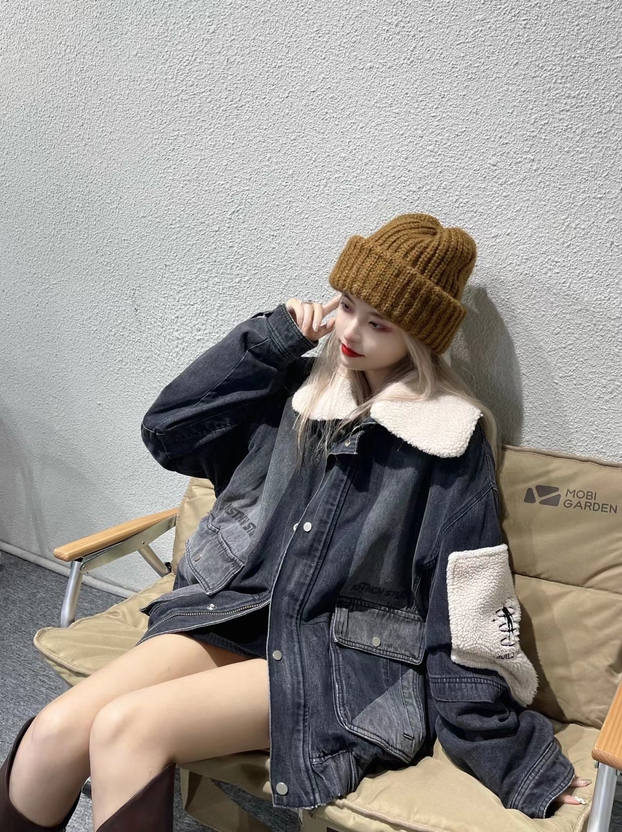 牛仔外套是潮人必备的时尚单品,牛仔的牛仔外套,个性有魅力,做旧的牛仔质感,打破了旧牛仔的单调感。毛绒的拼接设计,提高了整体的保暖度,让衣身温暖有佳。复古的翻领设计,展现随性洒脱的魅力。内里的羊羔绒,给你带来温暖的感受。